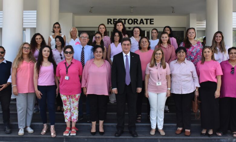 Girne Amerikan Üniversitesi’nin (GAÜ) akademik ve idari görevlerini üstlenmiş kadın çalışanları, “1-31 Ekim Meme Kanseri Farkındalık Ayı” çerçevesinde pembe giysileriyle, küresel dayanışmada yerlerini aldı.