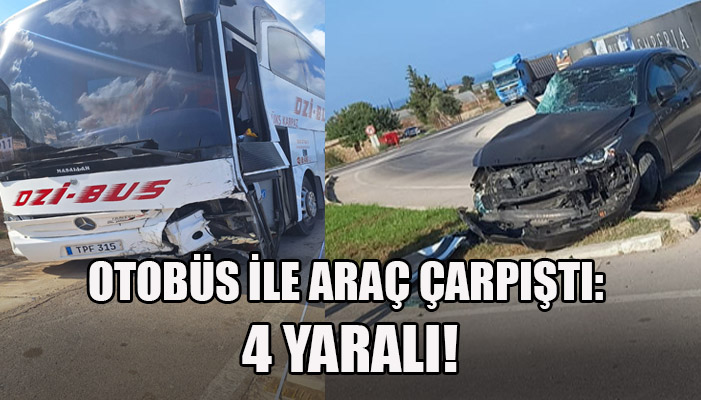 Tatlısu-Girne ana yolu üzerinde bulunan üç yol kavşağında bu sabah meydana gelen kazada, otobüs ile araç çarpıştı. Kazada biri dört aylık bebek, biri çocuk olmak üzere dört kişi yaralandı.