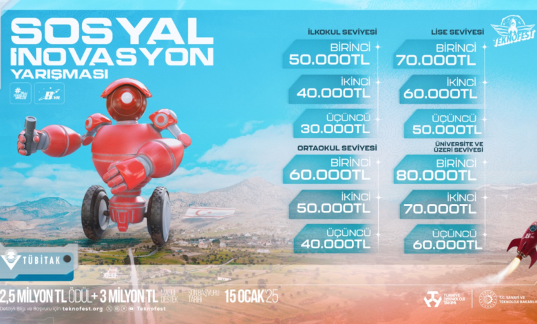TEKNOFEST KKTC kapsamında düzenlenen Sosyal İnovasyon Yarışması bu yıl toplumsal faydayı artırmayı ve yaşam kalitesini iyileştirmeyi hedefleyen projeler için yer açıyor. Yürütücülüğünü TÜBİTAK’ın üstlendiği yarışma, bireylerin yaratıcı ve yenilikçi fikirlerini hayata geçirerek toplumsal sorunlara çözüm sunmalarını teşvik etmeyi amaçlıyor.