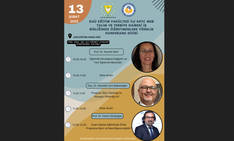 Doğu Akdeniz Üniversitesi (DAÜ) Eğitim Fakültesi ile Millî Eğitim Bakanlığı, Talim ve Terbiye Dairesi Müdürlüğü iş birliğinde yarın öğretmenlere yönelik konferans düzenleyecek.