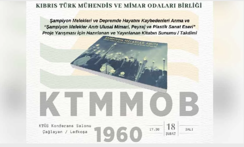 Kıbrıs Türk Mühendis ve Mimar Odaları Birliği (KTMMOB), 18 Şubat Salı günü Şampiyon Melekleri Anma ve Anıt Projesi Yarışması için hazırlanan kitabın tanıtım etkinliği düzenleneceğini duyurdu.
