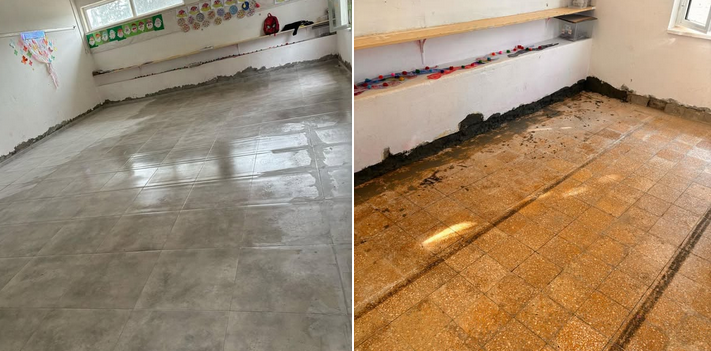 Beyarmudu İlkokulu’nda seramik döşeme çalışmaları tamamlandı