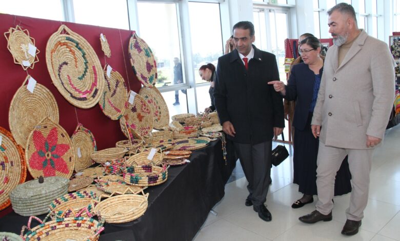 Törenin ardından, Karpaz dokuma sanatı ve sele sepet örücülüğü eğitimi alan 54 kadının ürünlerinin yer aldığı sergi açıldı.