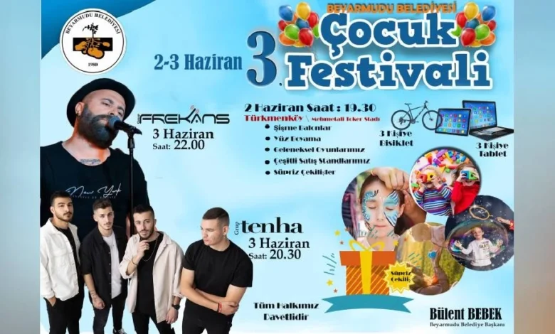 Beyarmudu Belediyesi 3. Uluslararası Çocuk Festivali bu akşam başlıyor.