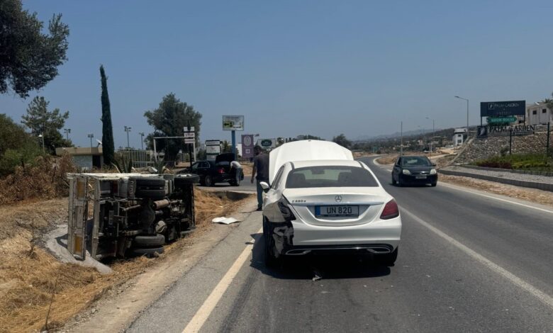 Polis Basın Subaylığı’ndan verilen bilgiye göre, kaza, Sezen Uzmaner’in (K-45) yönetimindeki UN 820 plakalı salon araçla Dima Market’in oto parkından Girne-Tatlısu anayoluna dikkatsizce giriş yaparak, Ahmet Tayfun Koca (E-22) yönetimindeki HK 529 plakalı hafriyat yüklü kamyonun önünü tıkaması sonucu meydana geldi.
