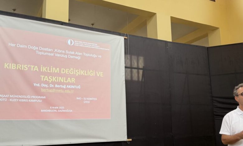 Her Daim Doğa Dostları Grubu, Kıbrıs Sulak Alan Topluluğu ve Toplumsal Varoluş Derneği (TOVAD) tarafından düzenlenen “Kıbrıs’ta İklim Değişikliği ve Taşkınlar” konulu seminer bu sabah gerçekleştirildi.