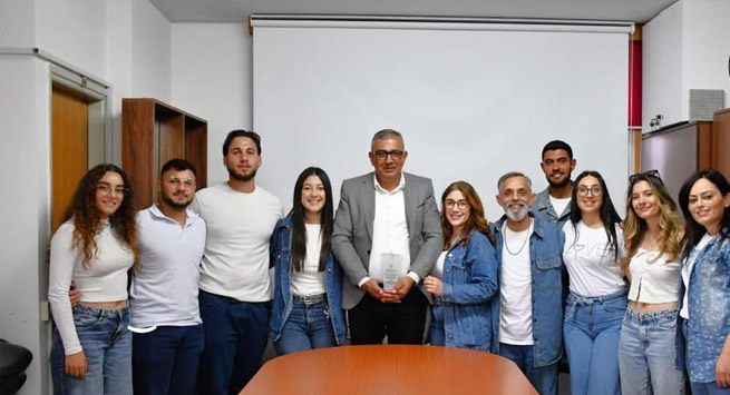 Mesarya Belediye Başkanı Ahmet Latif, sosyal medya hesabından yaptığı açıklamada, Akdoğan Gençlik Merkezi Halk Dansları Topluluğu eğitmeni ve dansçılarının Mesarya Belediyesi’ni ziyaret ettiğini duyurdu.