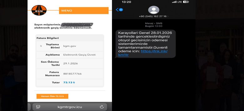 Gönderilen mesajlarda “Elektronik geçiş ücretiniz ödenemedi” veya “28.01.2026 tarihinde gerçekleştirilen otoyol geçişinizin ödemesi tamamlanmamıştır” gibi ifadeler yer alırken, “güvenli ödeme” adı altında farklı internet adreslerine yönlendiren linkler paylaşılıyor. Bu linklerin, KGM’nin resmî internet siteleriyle hiçbir bağlantısının bulunmadığı tespit edildi.
