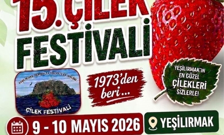 Yeşilırmak-Yedidalga Üreticiler Birliği tarafından düzenlenecek 15. Çilek Festivali 9-10 Mayıs tarihlerinde yapılacak.